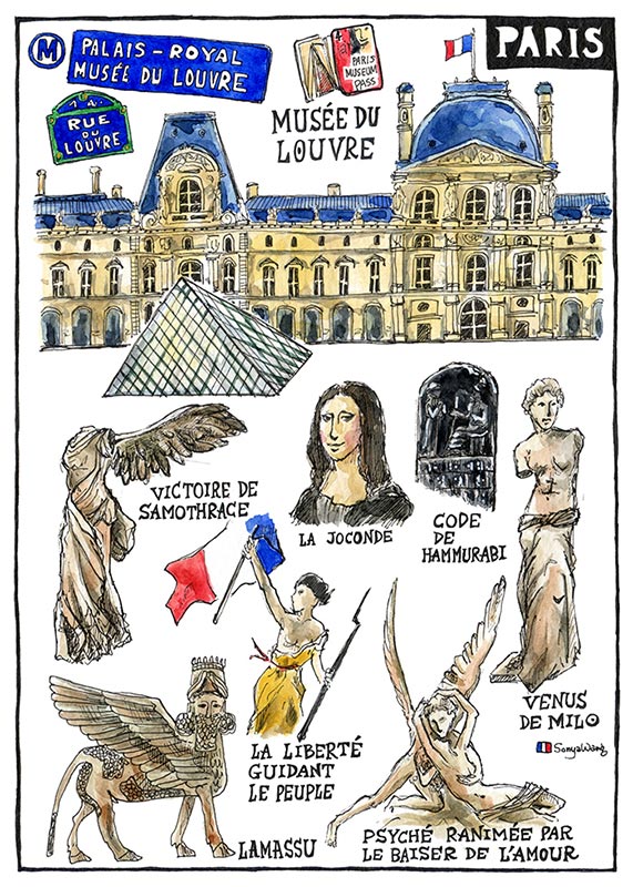 In Paris #2 location: Paris, France spots: Musée du Louvre artist & artworks: Victoire de Samothrace, La Joconde, Code de Hammurabi, Venus de Milo, La Liberté guidant le peuple, Lamassu, Psyché ranimée par le baiser de l’Amour