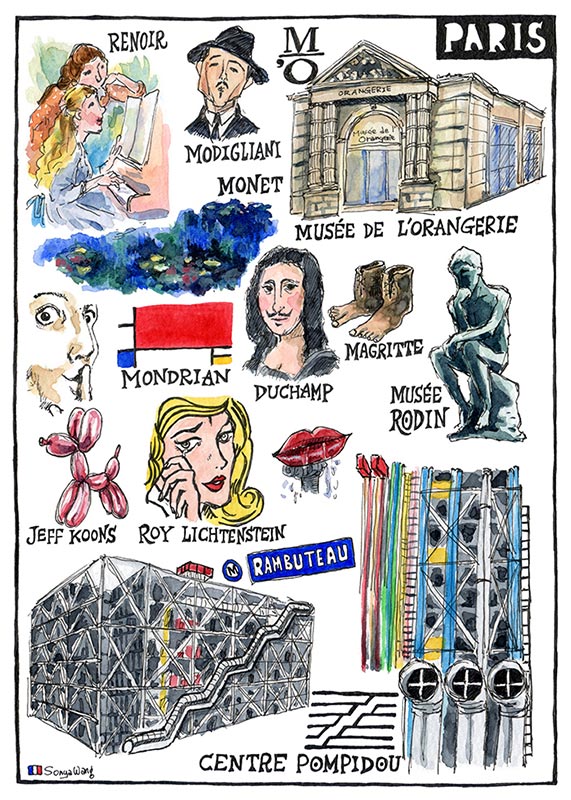 In Paris #4 location: Paris, France spots: Musée de l’Orangerie, Musée Rodin, Centre Pompidou artist & artworks: Renoir, Modigliani, Monet, Mondrian, Duchamp, Magritte, Jeff Koons, Roy Lichtenstein