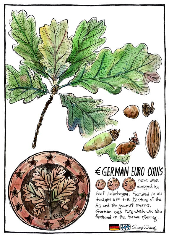 German Euro Coins location: Munich, Germany German oak twig which was also featured on the former pfennig.