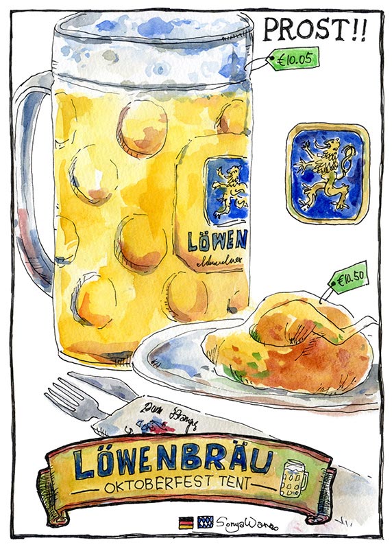 German Beer & Roast Chicken location: Munich, Germany At Oktoberfest beer tents, you can order not only German beer but also roast chicken.