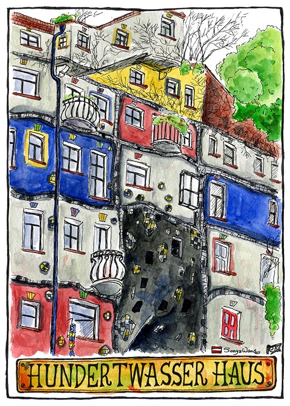 The Hundertwasserhaus (“Hundertwasser house”) is an apartment house in Vienna, Austria. Completed in 1985, after the idea and concept of Austrian artist Friedensreich Hundertwasser.
