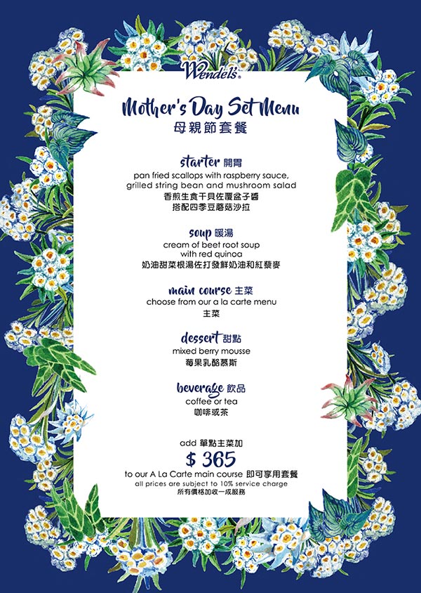 478 client: Wendel’s German Bakery & Bistro, Daan Branch 1932 & Tienmu Flagship Store Mother's DayRestaurantSpecial Menu 0 FacebookWhatsappLINEEmail